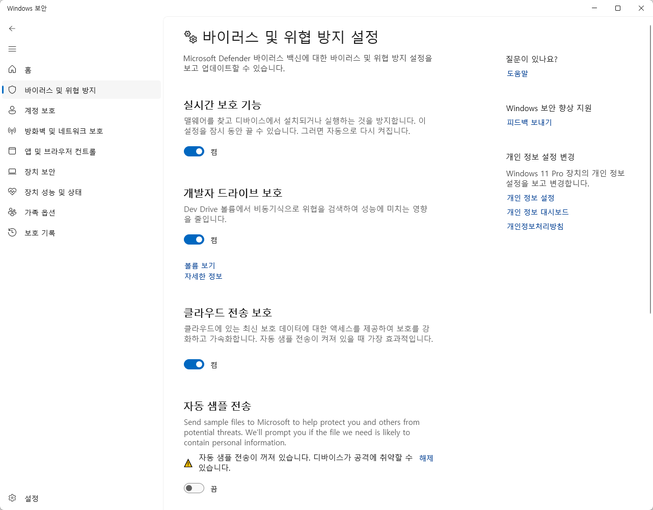 → 실시간 보호 켜짐 확인