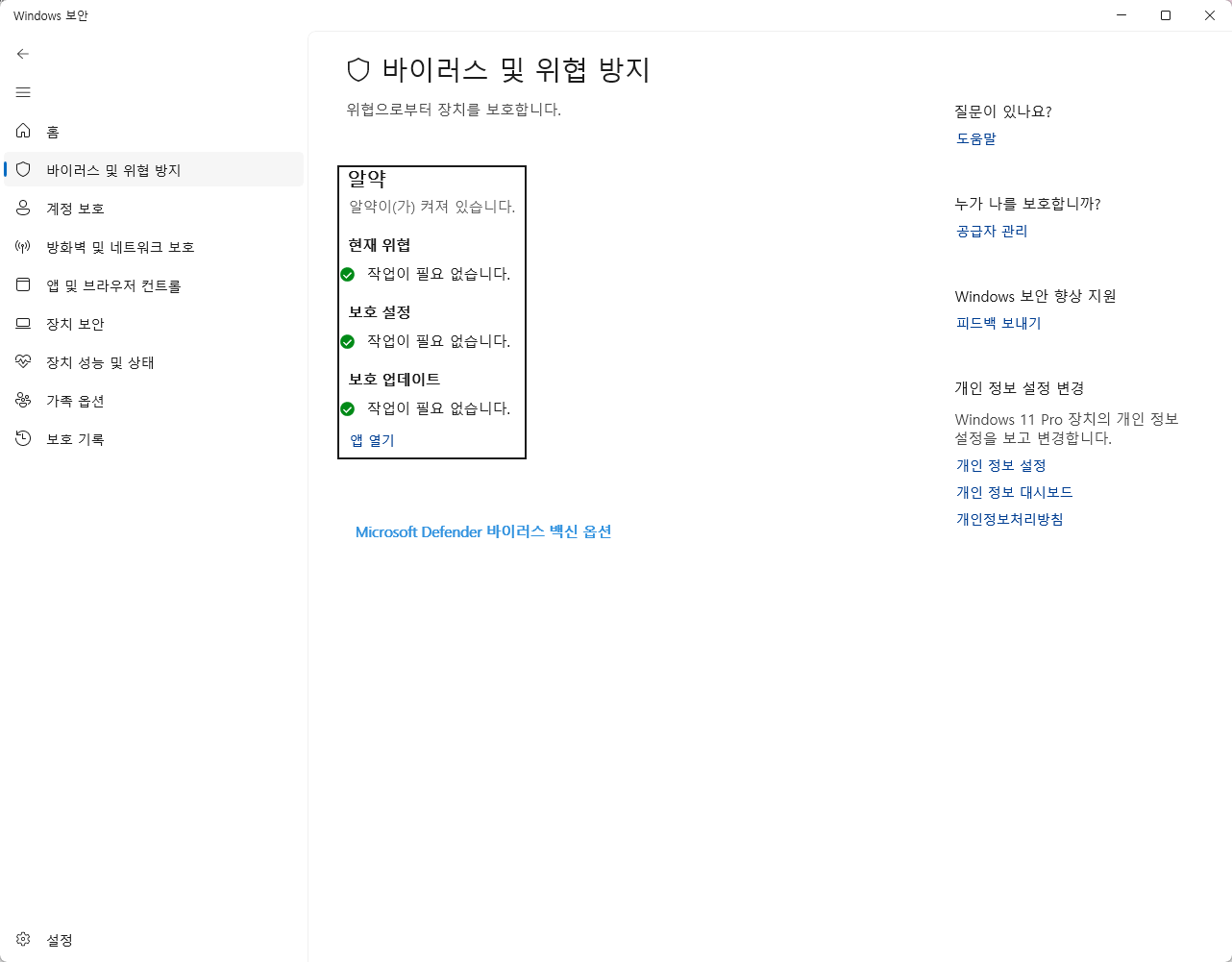 - 실시간 보호 활성화 여부 확인