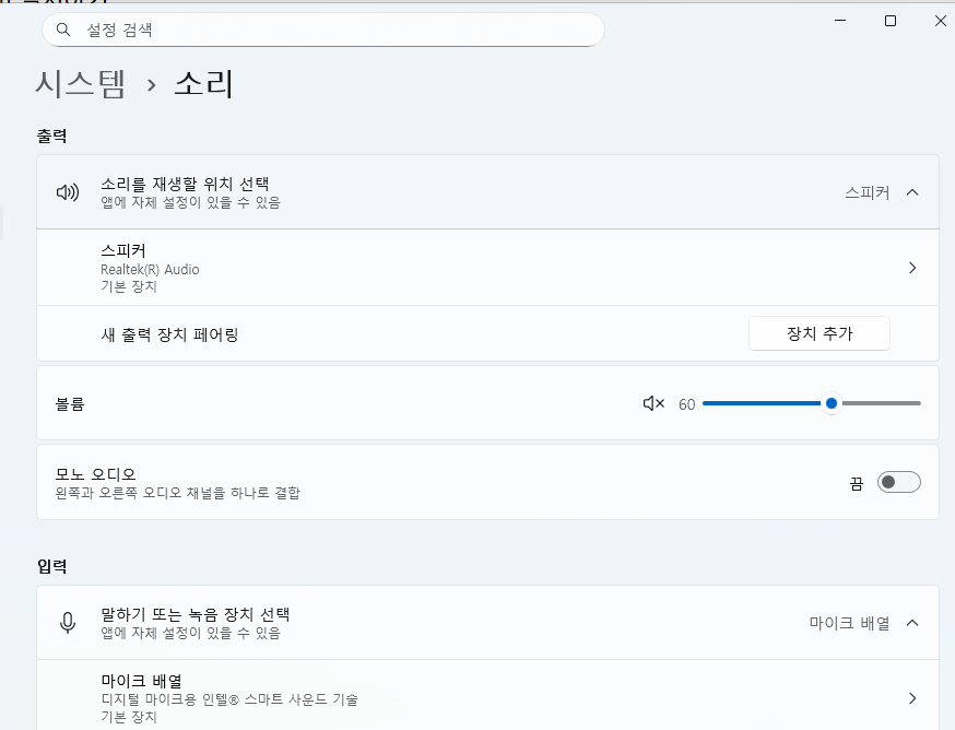 2️⃣ 사운드 출력 장치가 올바른지 확인하기