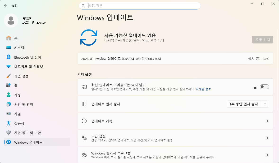 1️⃣ Windows 업데이트 상태 확인하기