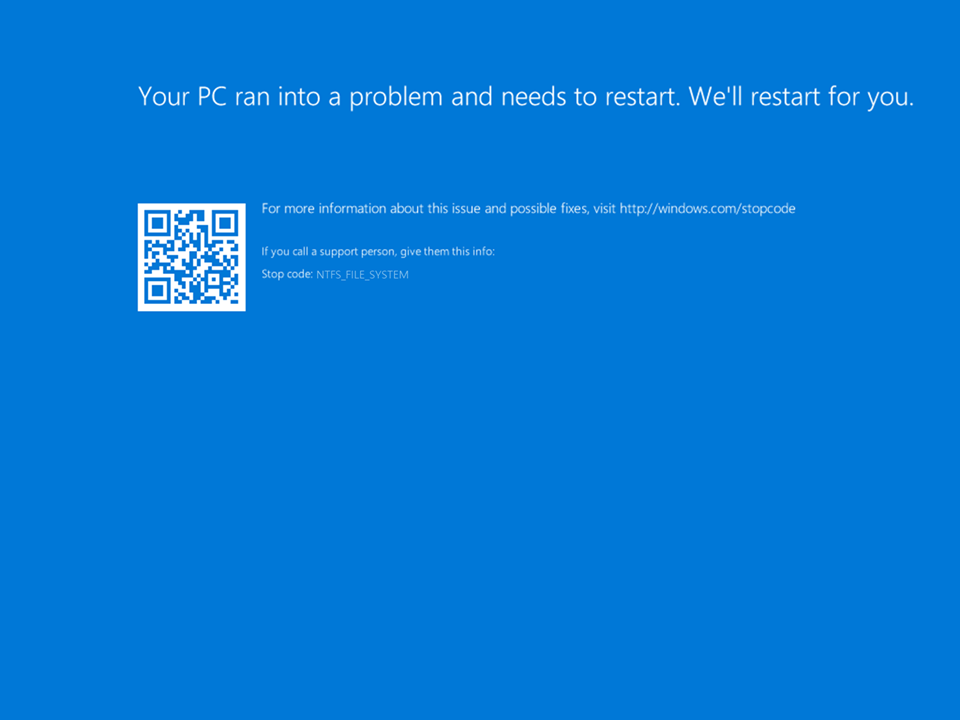 → NTFS_FILE_SYSTEM 오류 예시 화면