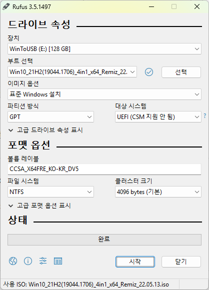 Rufus 설정 화면에서 GPT, MBR 선택 때문에 막히는 경우가 많습니다.