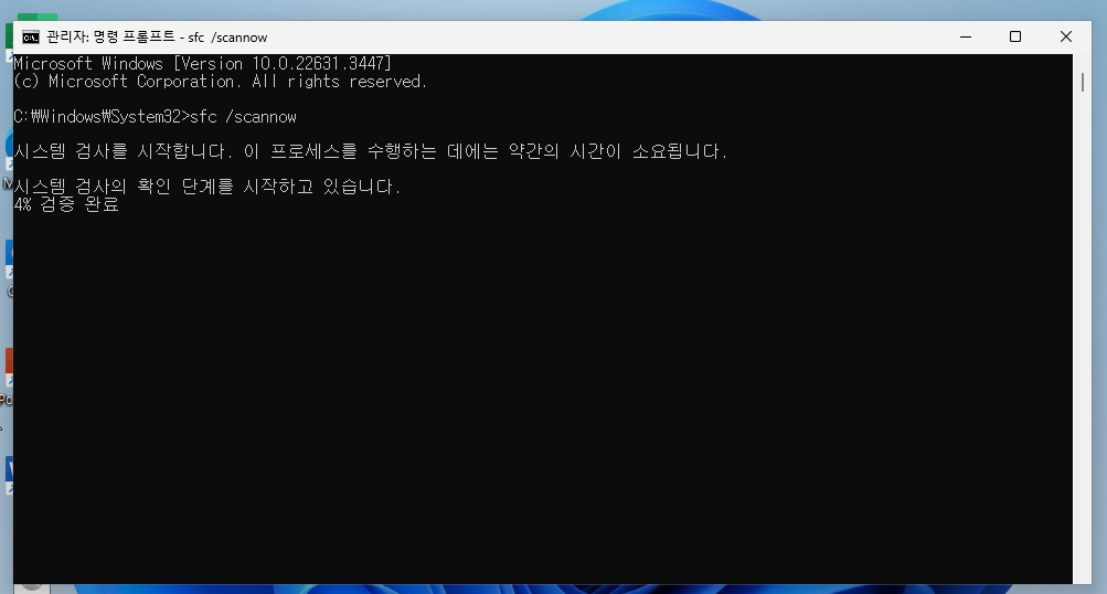 4️⃣ 시스템 파일 검사 (SFC 실행)